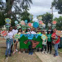 Students and community of the José M. Lázaro School during the festivities of the PR Walk in the face of climate change 2019.