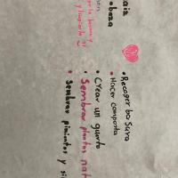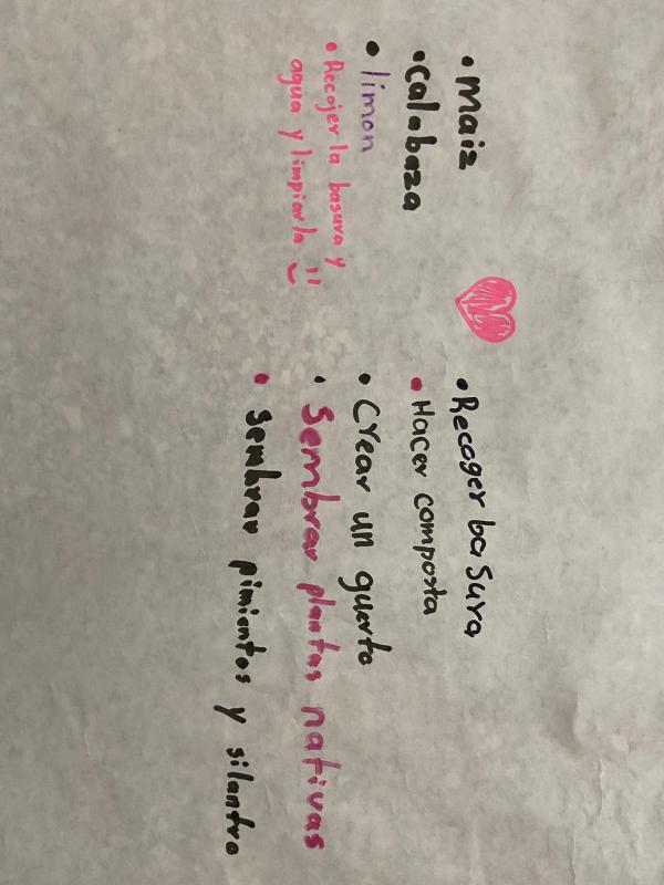 Listado hecho por los estudiantes, de frutos que se sembrarían en el nuevo huerto escolar