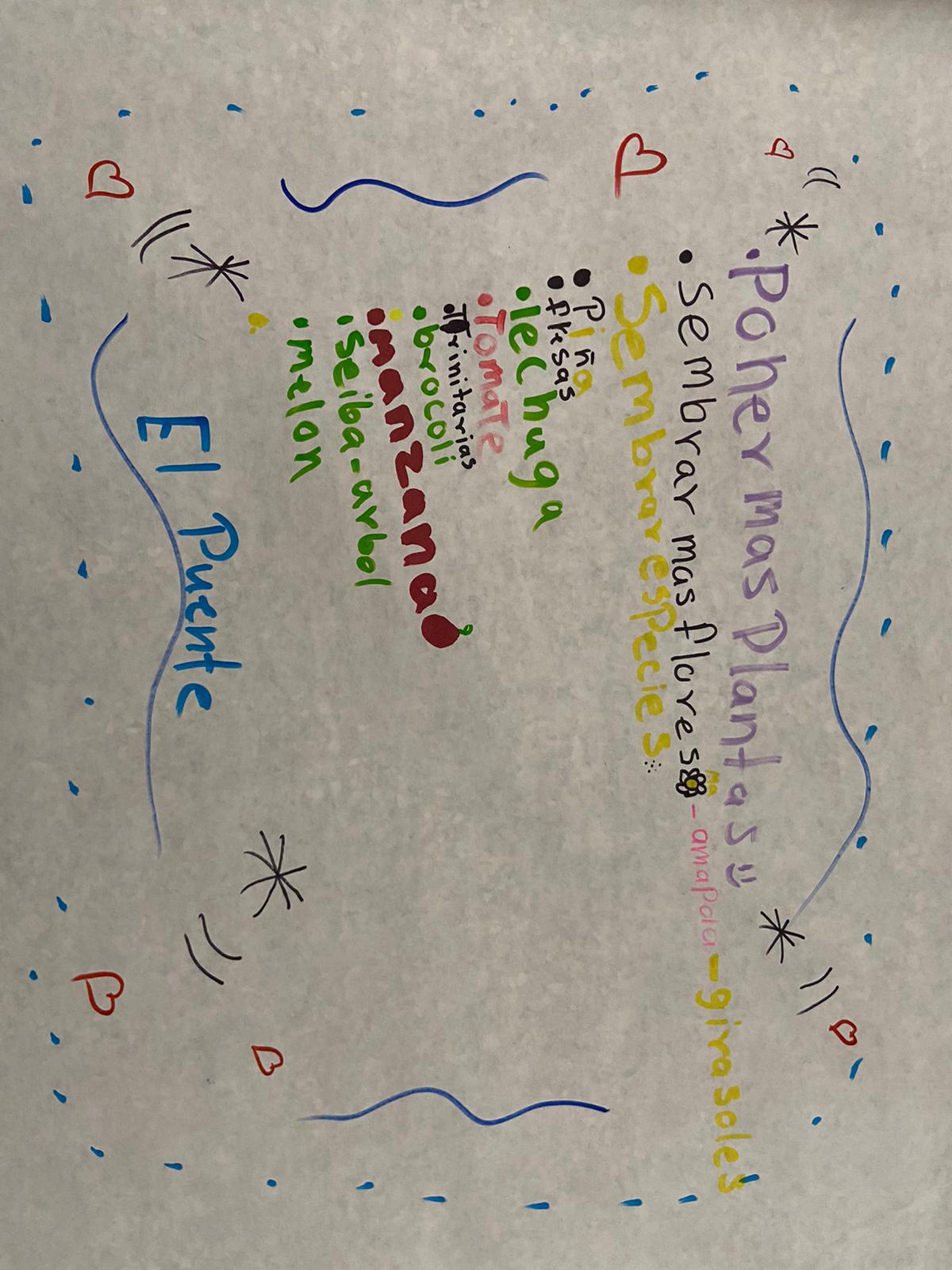 Listado hecho por los estudiantes, de frutos que se sembrarían en el nuevo huerto escolar